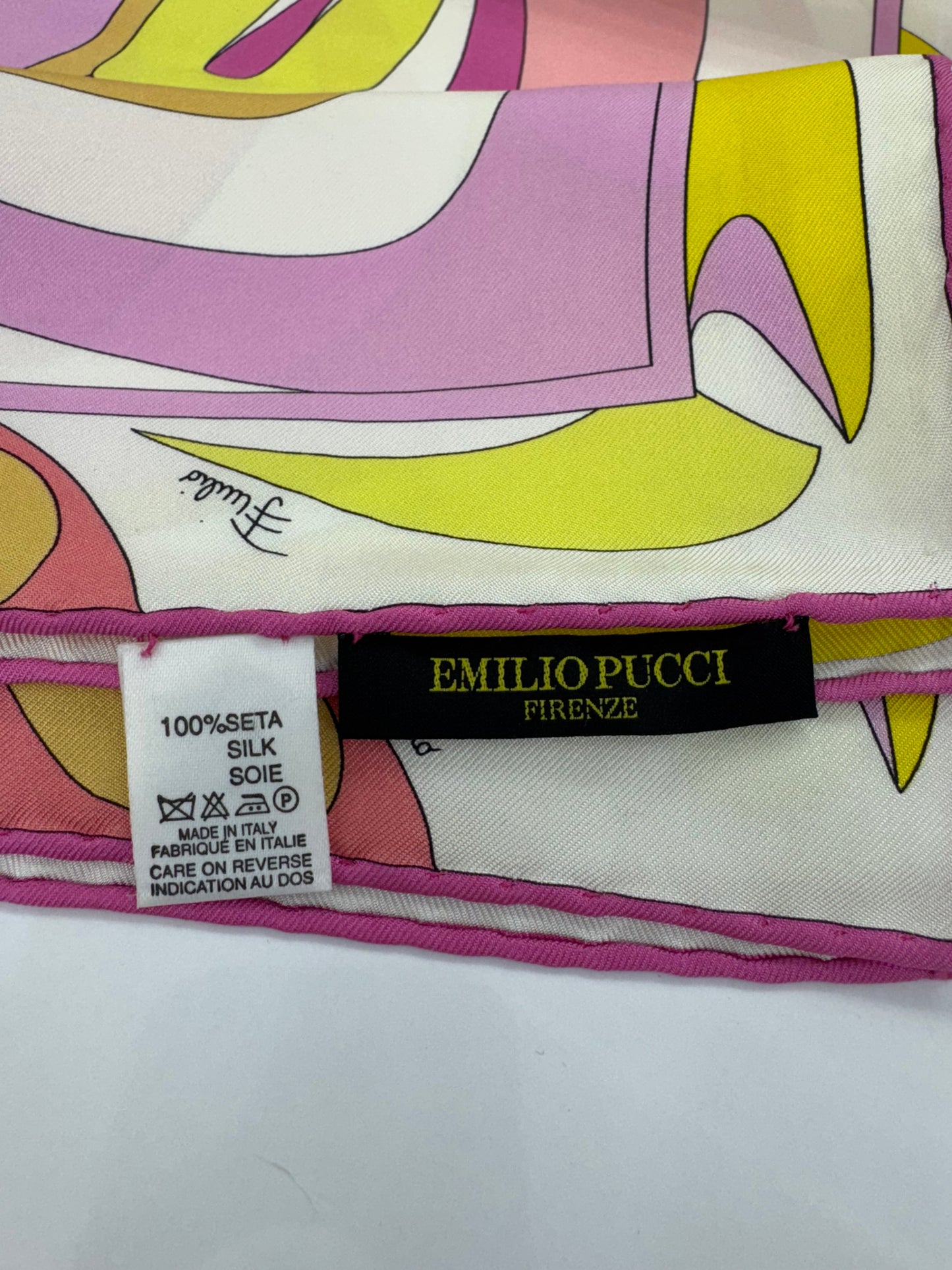 Vintage Emilio Pucci 100% Silk Scarf – Pink & Yellow Abstract Floral