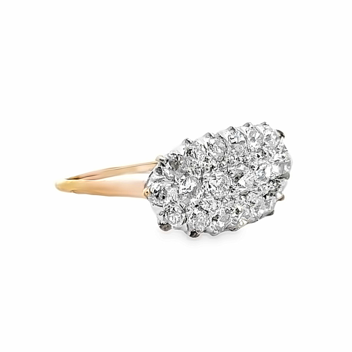 Elevate your proposal with the timeless elegance of this stunning oval ring in 14K gold, featuring an oval cluster of meticulously set round-cut diamonds in pave-setting. This vintage ring features approximately 2.20 carats. It is designed for those seeking the perfect blend of elegance and romance and sparkles like the stars in the night sky.