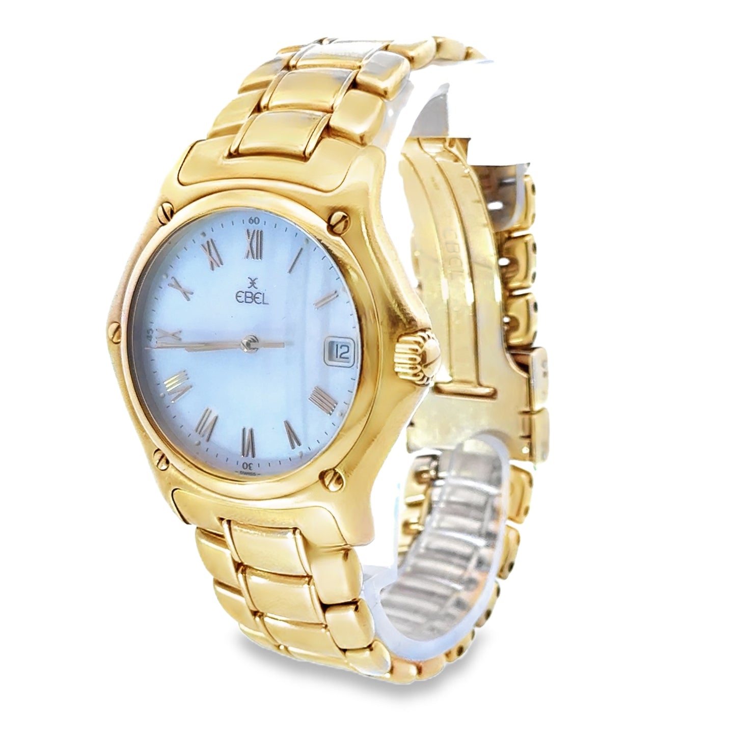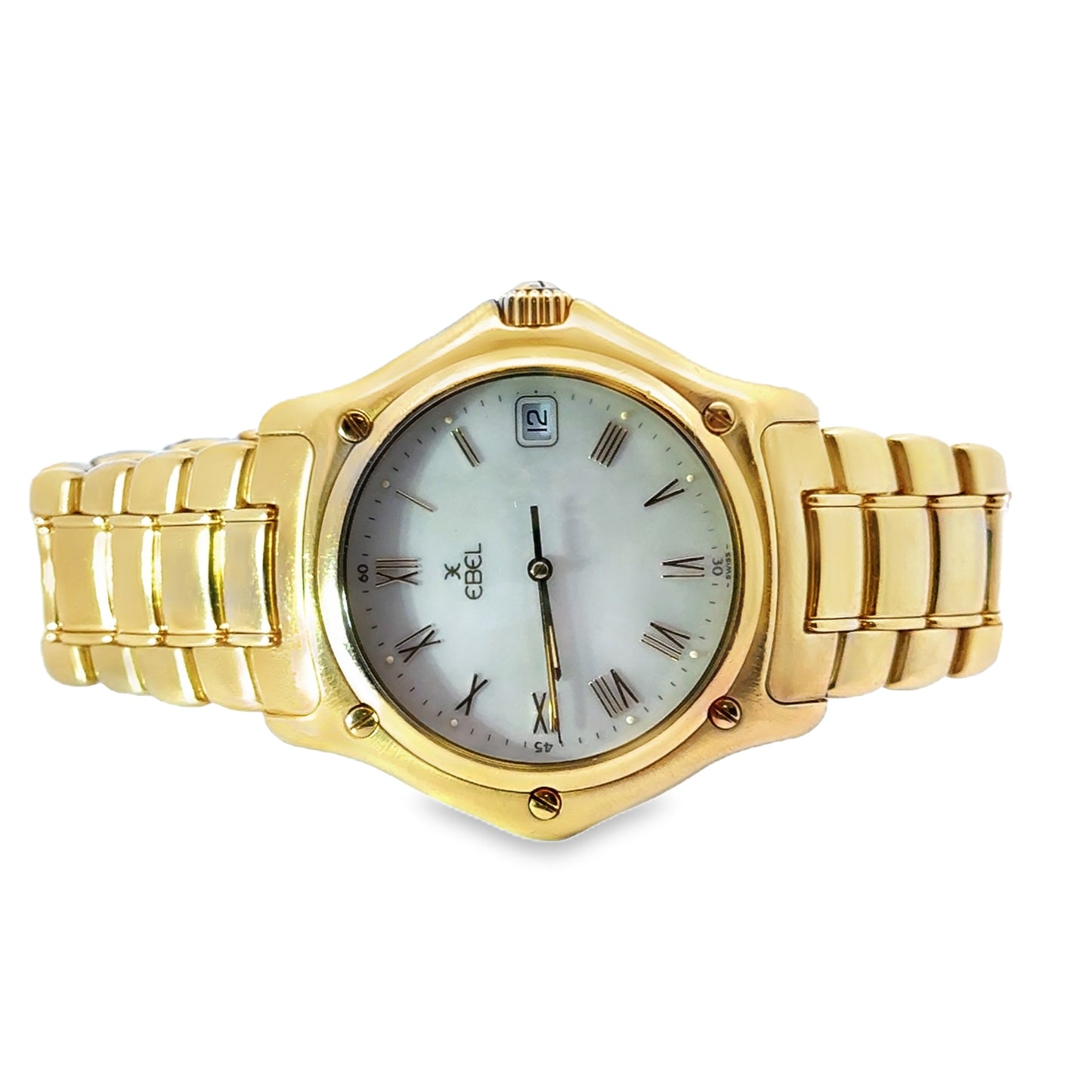 | Ebel, 18K Yellow Gold, 34mm case, mother of pearl dial, Roman numerals, date, bracelet strap, quartz movement, #75100441, #8187916, Swiss Made, Vintage 1911 | 144.4G |