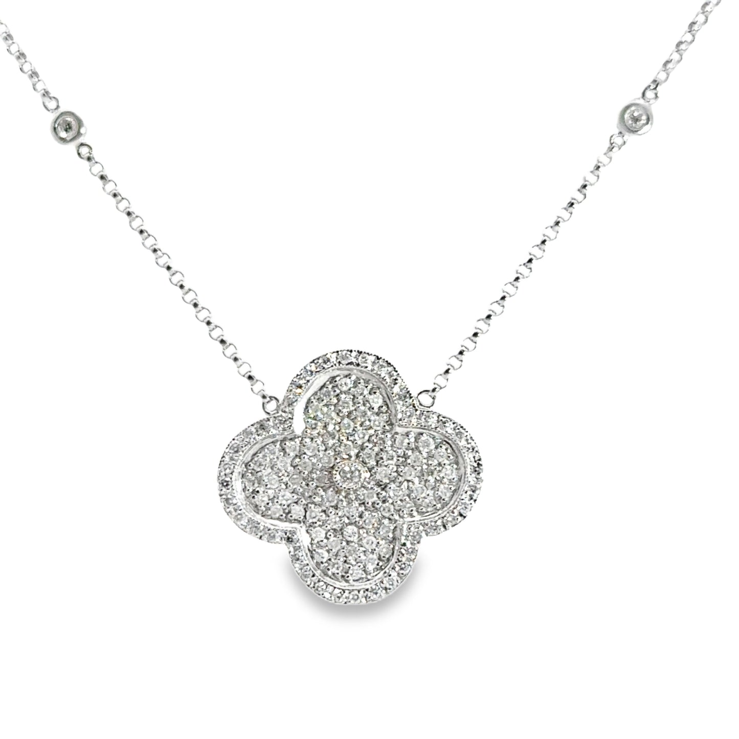 | 14K White Gold, Round-Cut Diamonds Approx.1.10ct., Size Approx. 24x24mm, 16 inch chain, 2 bezel set diamonds on chain, lobster claw clasp |